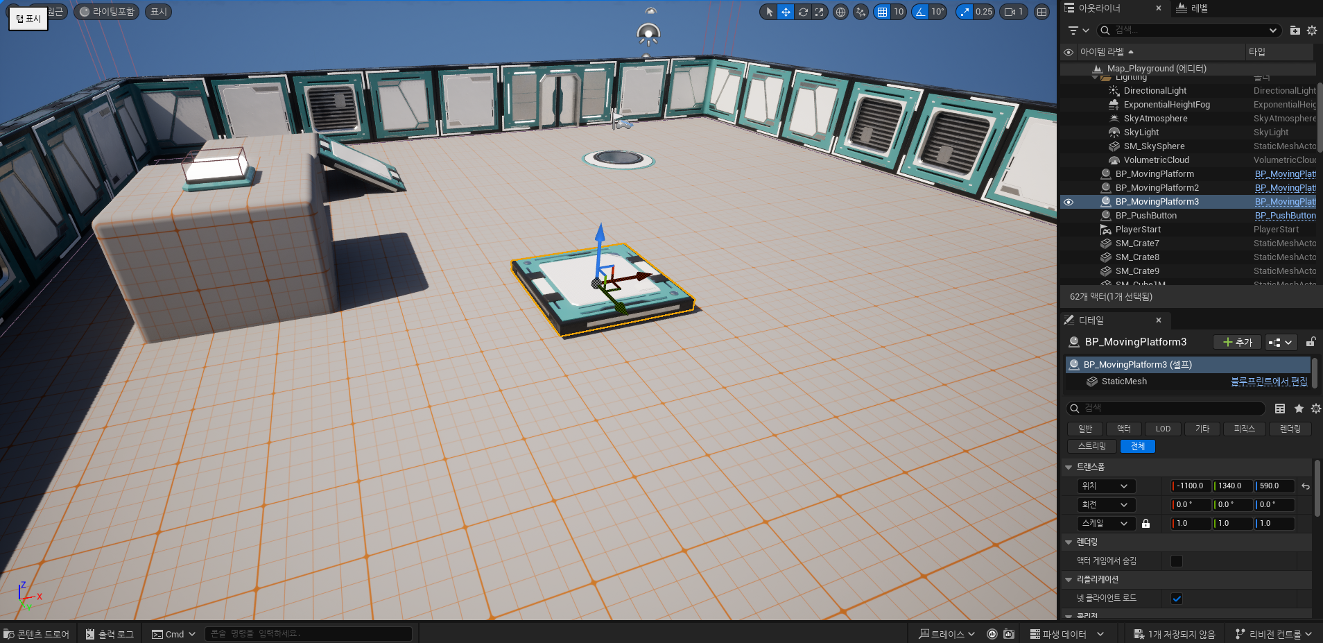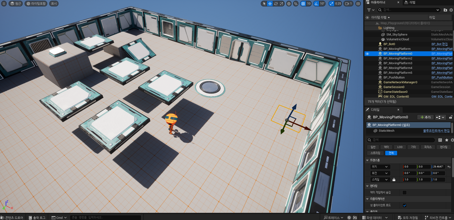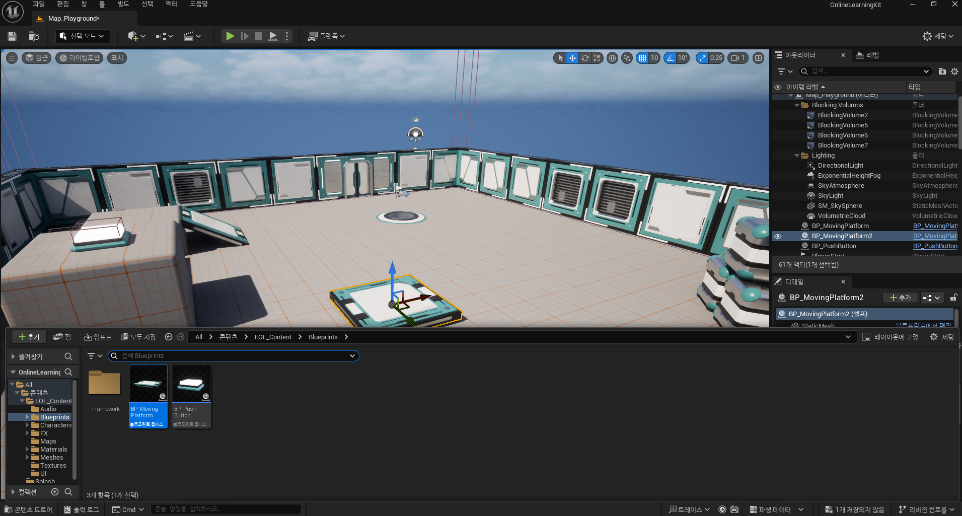 하지만 아웃라이너에는 분명히 BP_MovingPlatform0으로 생성된 모습입니다.