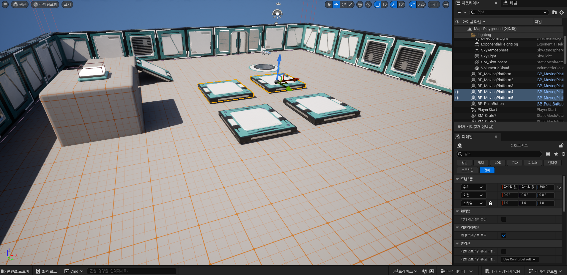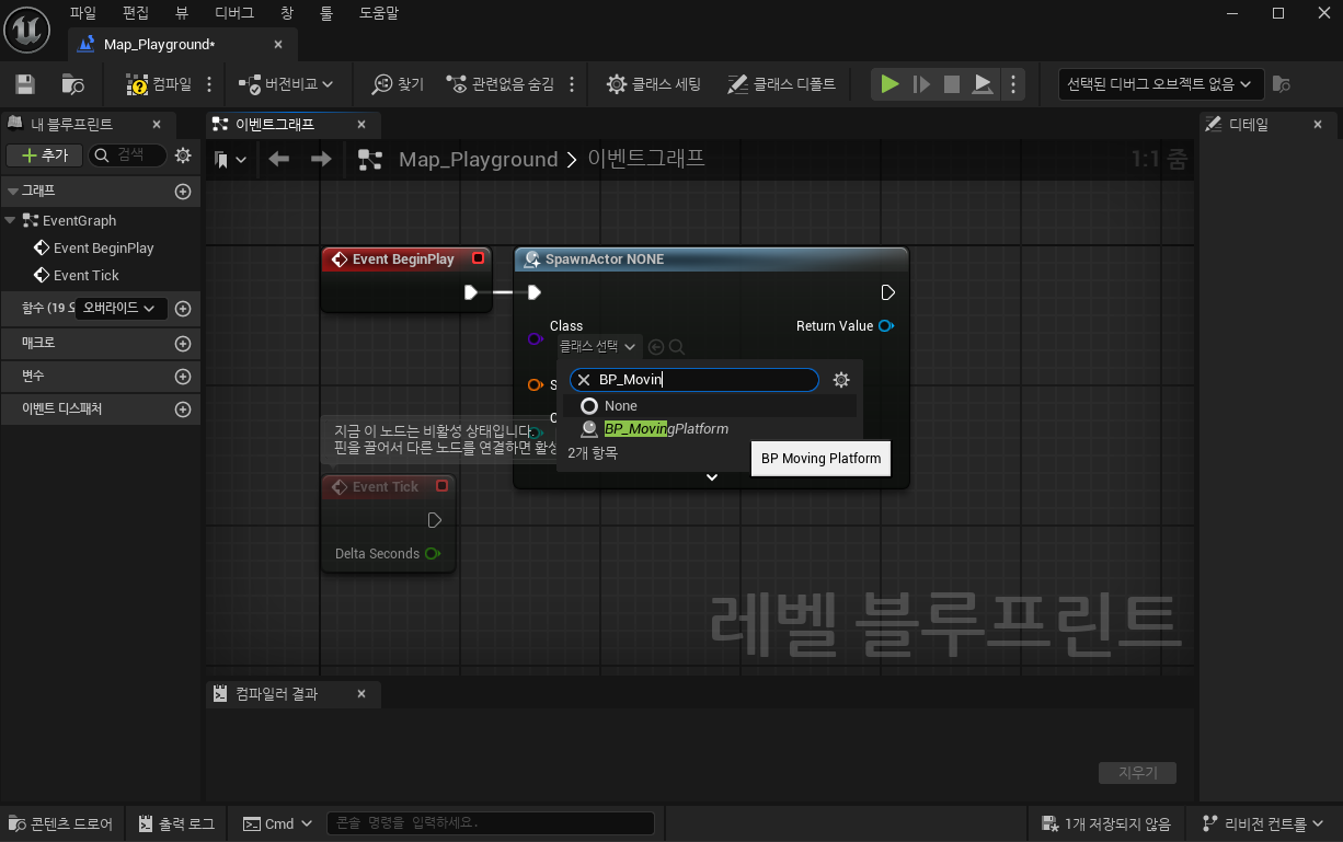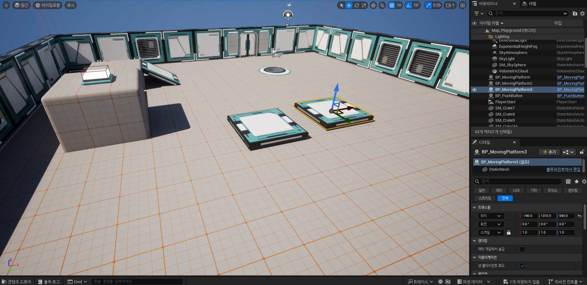 하지만 아웃라이너에는 분명히 BP_MovingPlatform0으로 생성된 모습입니다.
