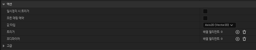 액션 > 값 타입을 Axis2D로 해줍니다 (2차원)