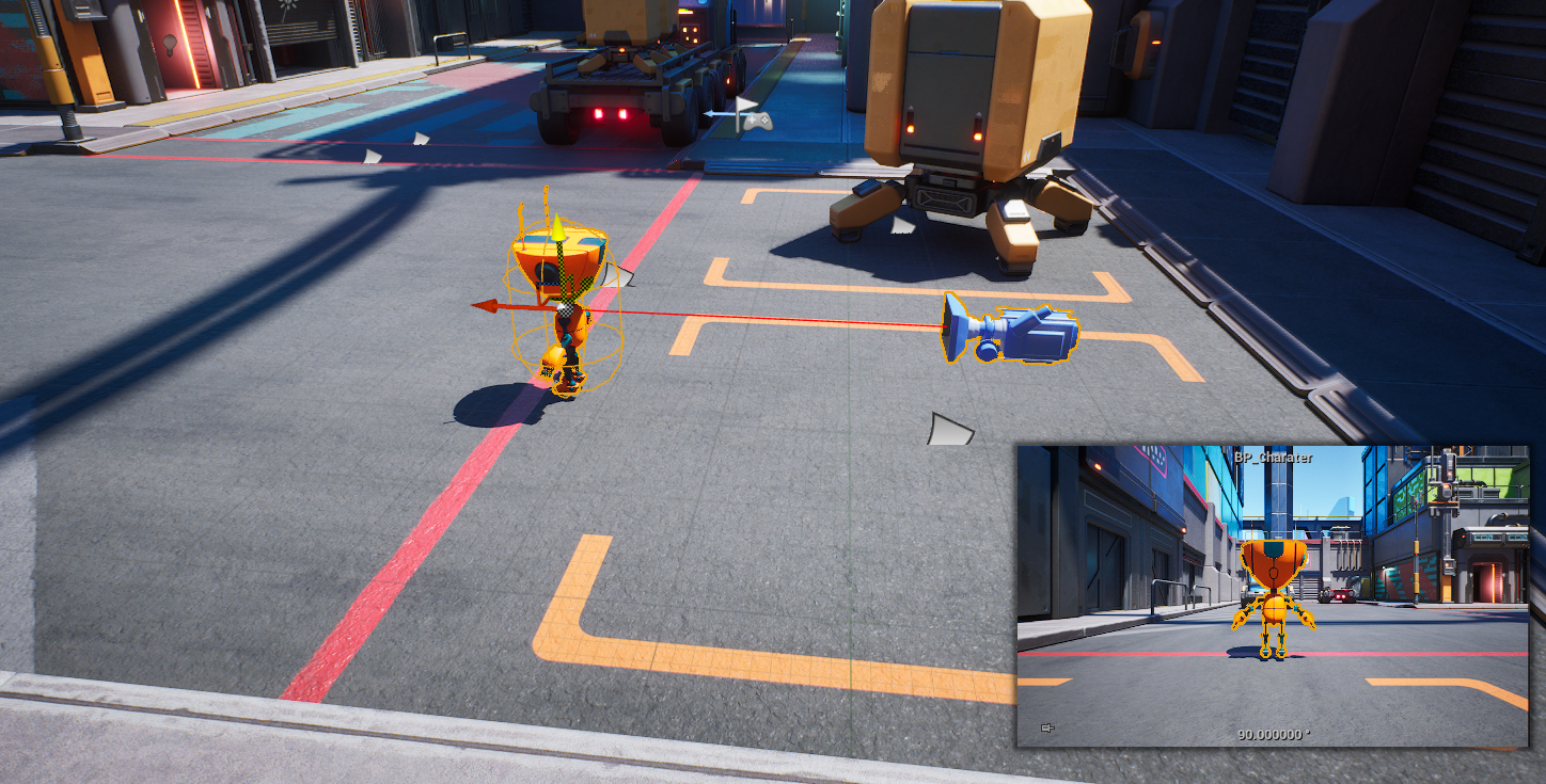 잘 추가가 되었습니다. 여기서 화살표 컴포넌트를 로컬에서 x의 방향이기 때문에 캐릭터를 X 방향으로 돌려주겠습니다.
