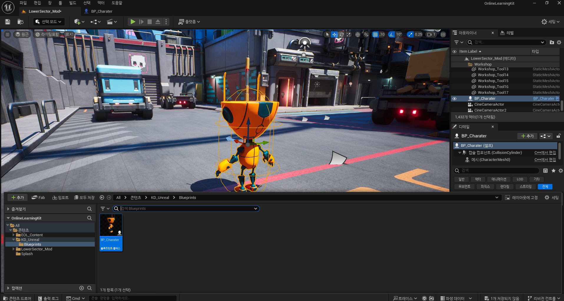곤텐츠 > 새폴더 > Blueprints > BP_Character(블루프린트 클래스) 만들어 줄겁니다.