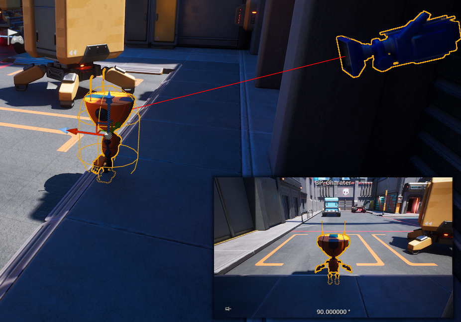만약 뒤에 장애물이 있다면, 스프링처럼 거리가 줄어들어 카메라가 오브젝트를 통과하지 않고 캐릭터를 보여주는 컴포넌트입니다.