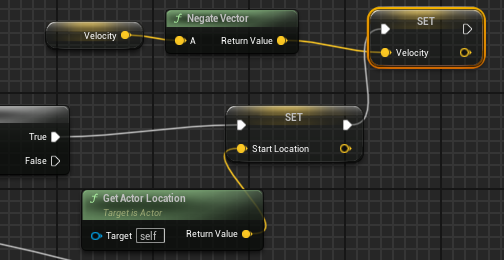이건 Velocity를 get 해서 Negate Vector로 값을 바꾼값을 다시 Set하고있습니다.