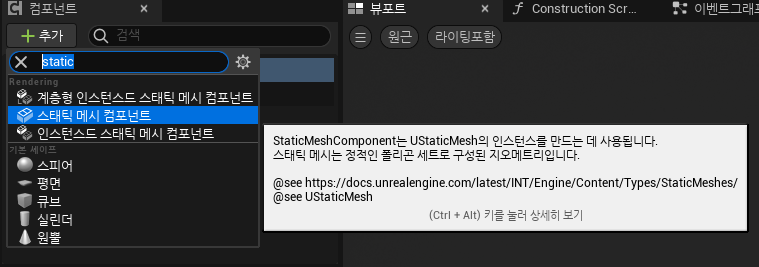 1-2. 메시(Static Mesh) 컴포넌트 설정