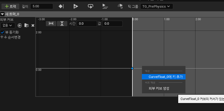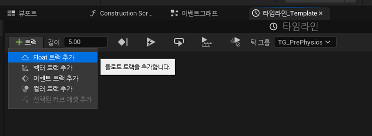 그럼 이렇게 타임라인 창이 나오는데, ㅌ느랙 눌러서 float 트랙 추가