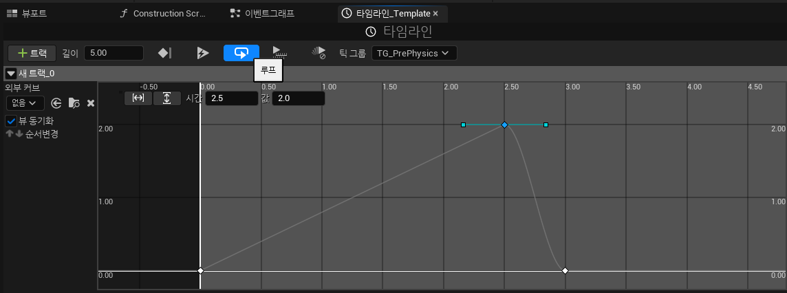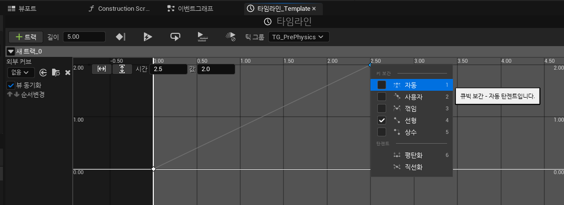 TimeLine은 시간에 따른 값 변화를 곡선으로 다룰 수 있어, 스크립트로 구현하기 힘든 부드러운 이동을 간단히 처리 가능합니다.