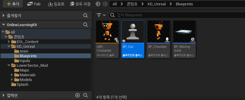 1. 액터 이동을 위한 블루프린트 클래스 생성하기